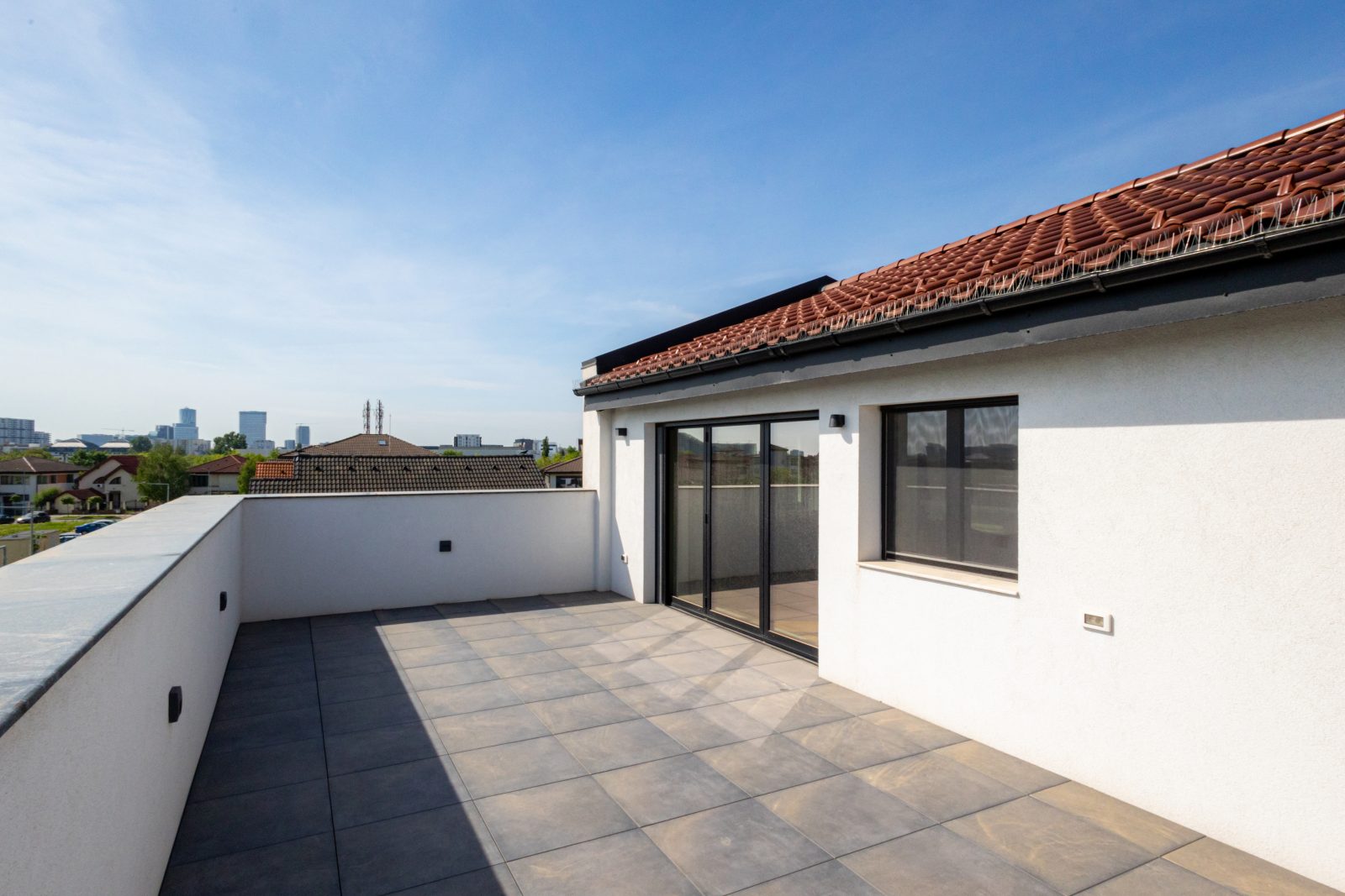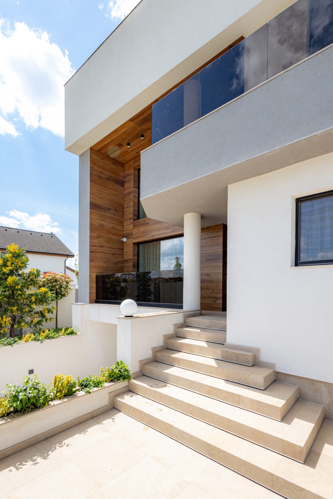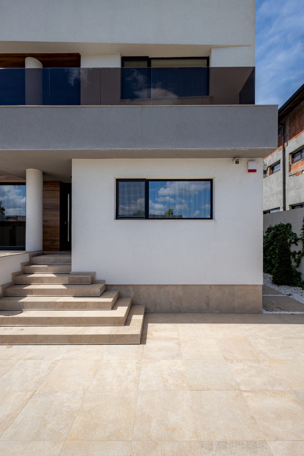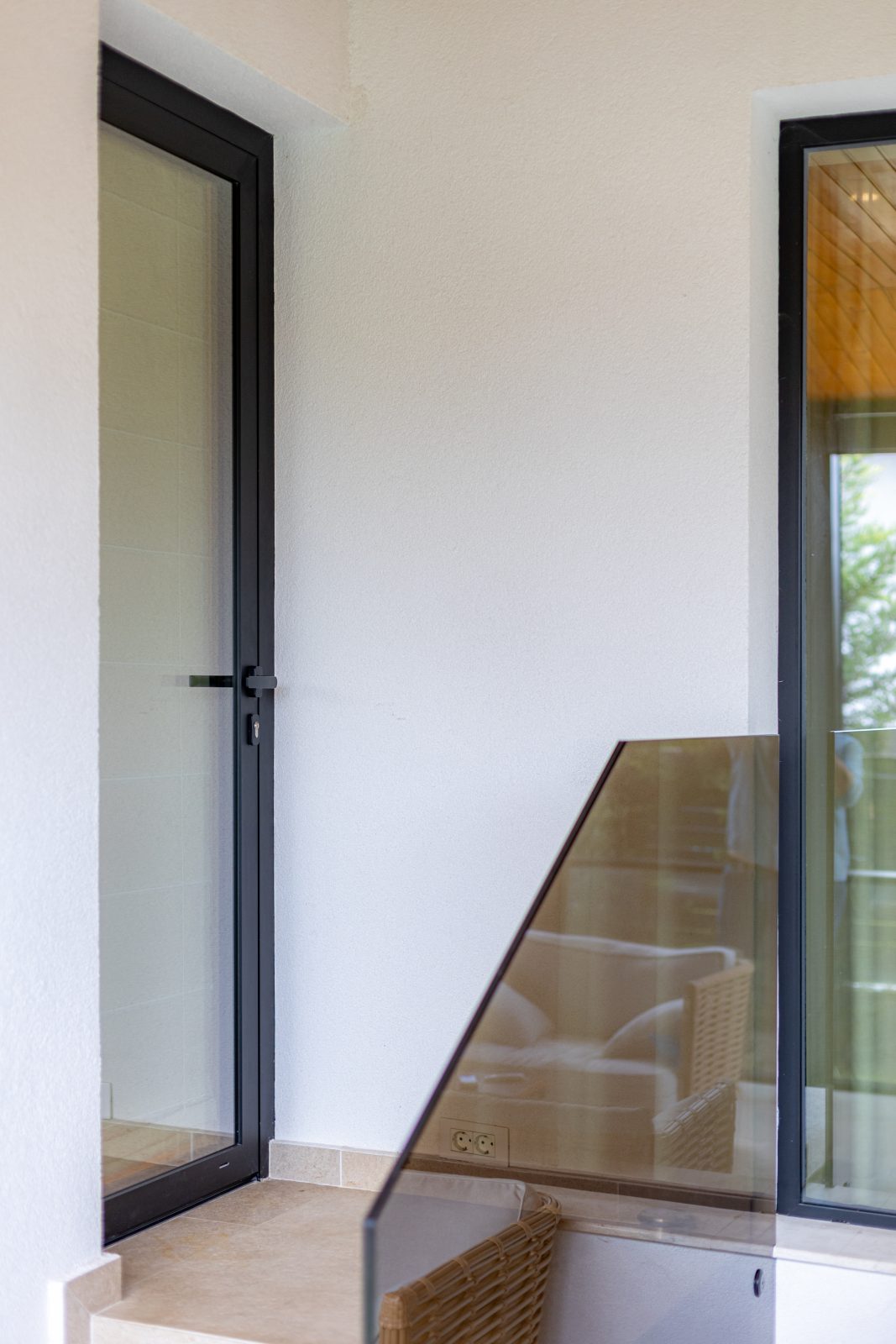 Pentru a obține o izolație fonică și termică superioară, am instalat ferestre și uși din aluminiu DAKO ALU KOMFORT, echipate cu geam tripan. Aceste produse combină performanța energetică de top cu un design rafinat, completând perfect estetica modernă a locuinței.