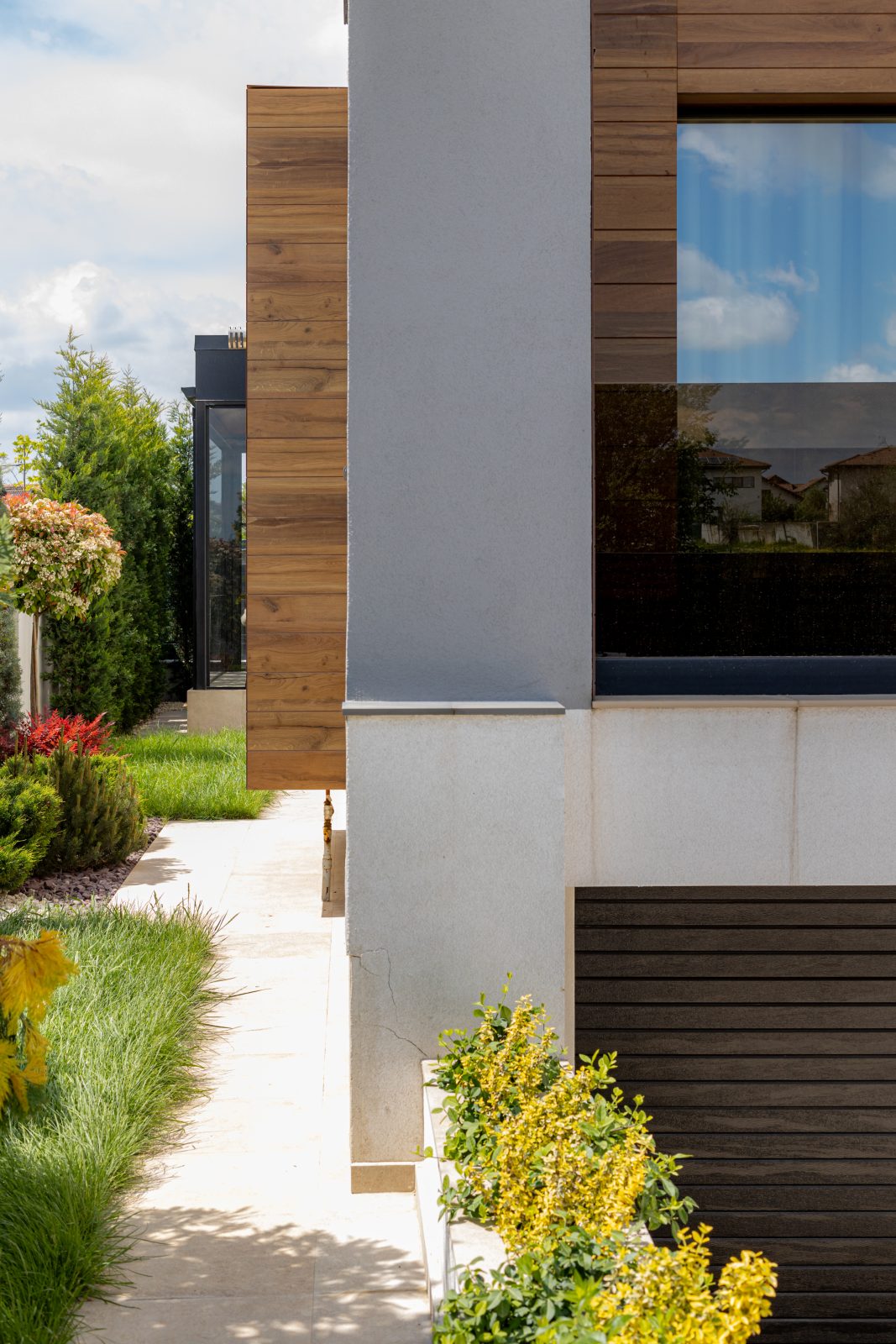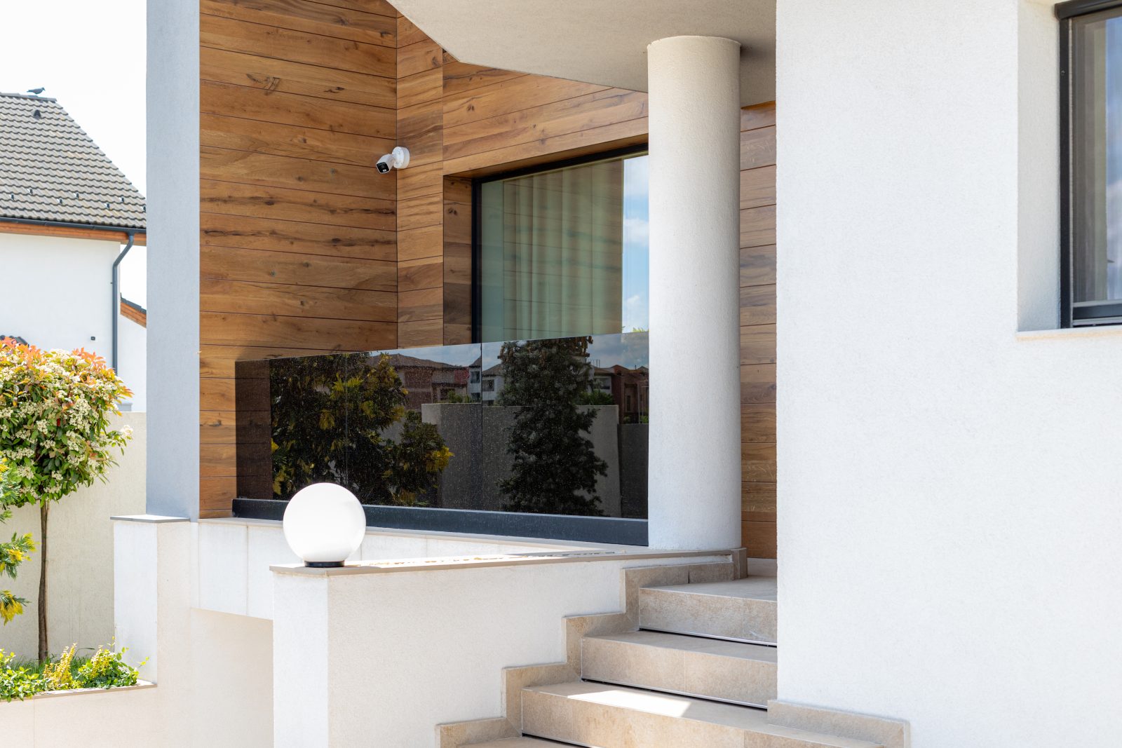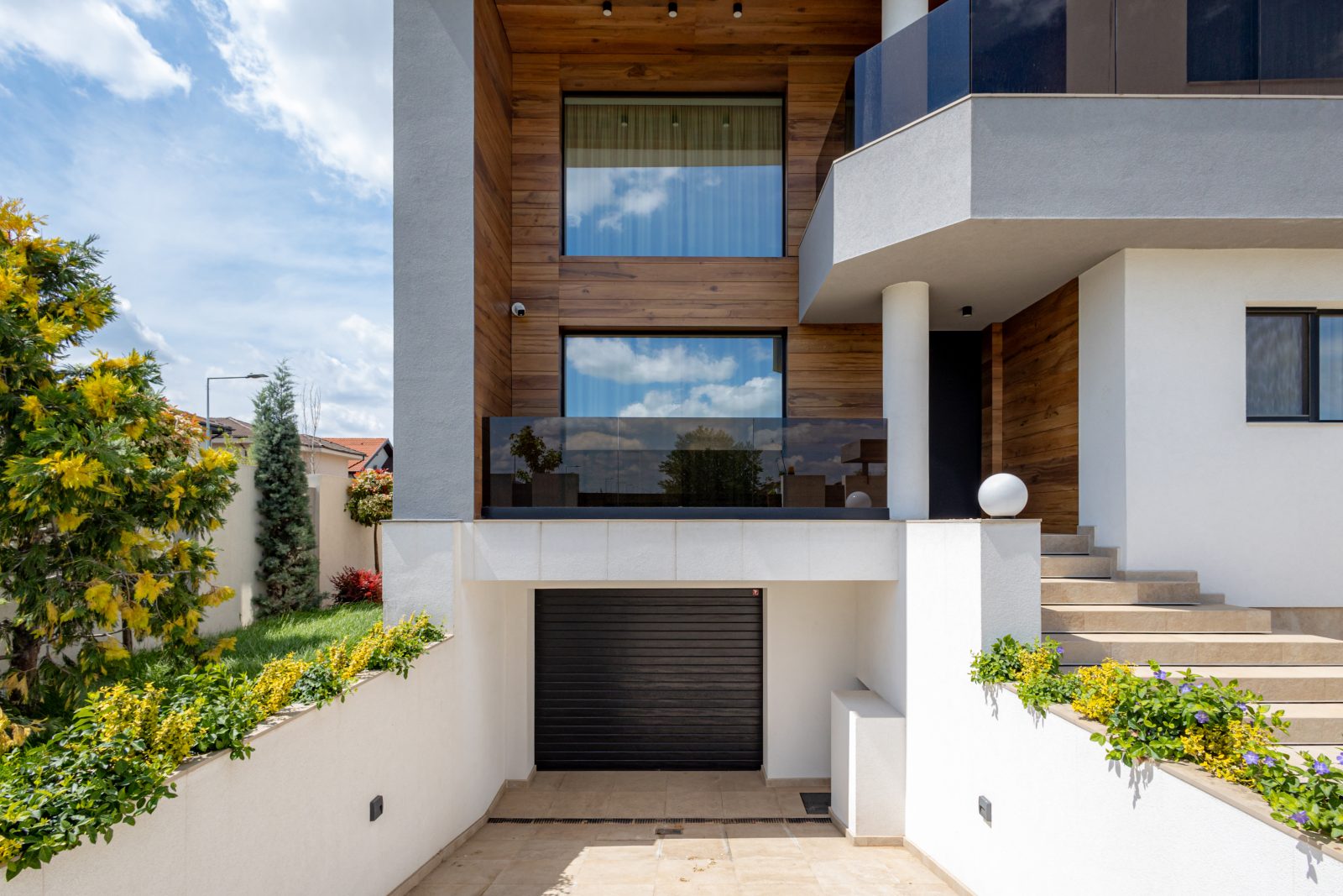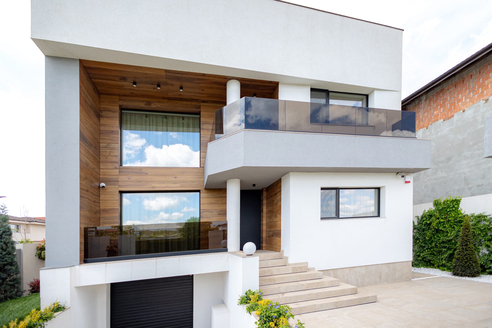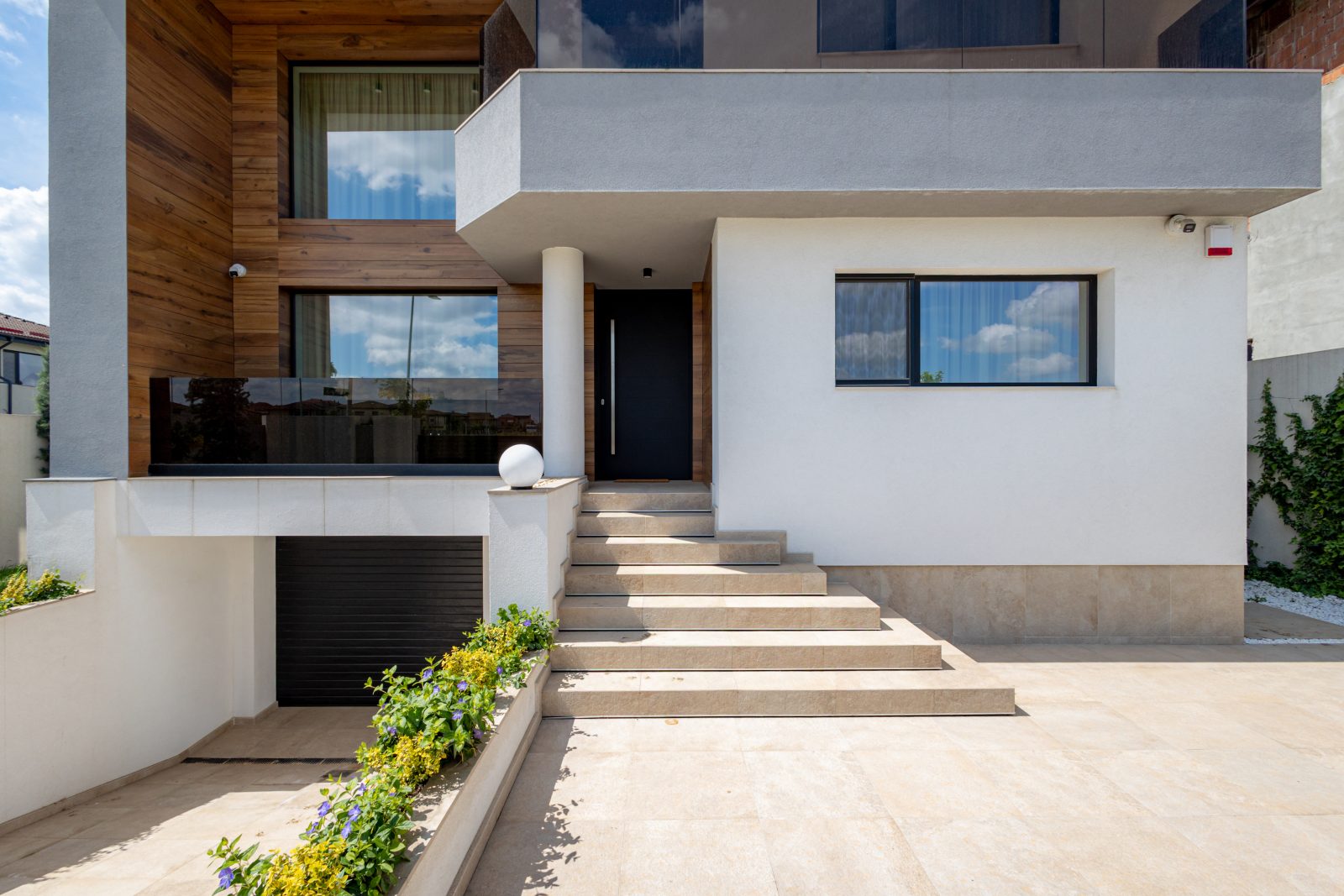 Pentru a obține o izolație fonică și termică superioară, am instalat ferestre și uși din aluminiu DAKO ALU KOMFORT, echipate cu geam tripan. Aceste produse combină performanța energetică de top cu un design rafinat, completând perfect estetica modernă a locuinței.