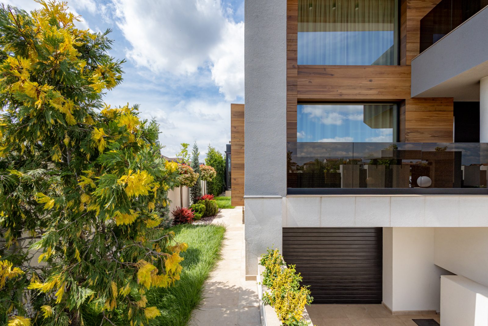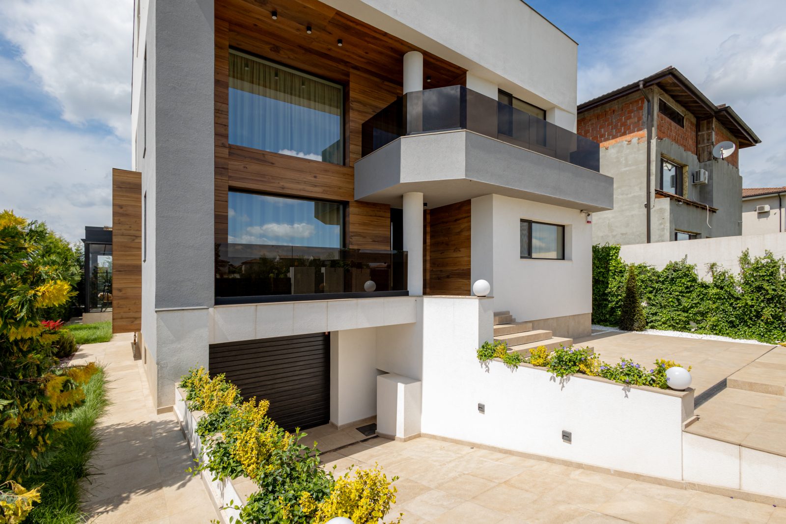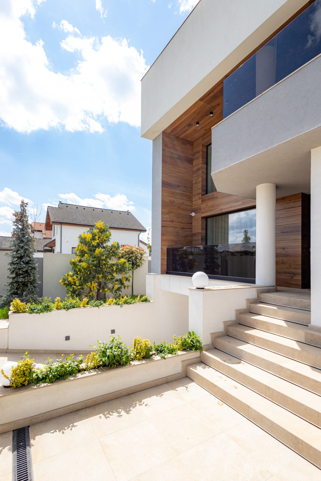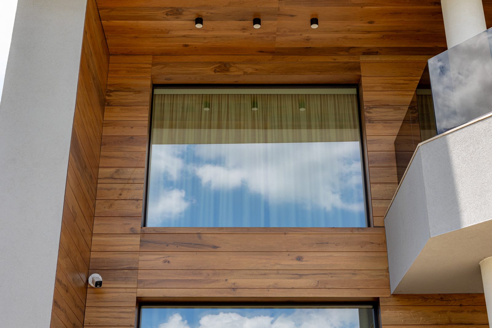 Pentru a obține o izolație fonică și termică superioară, am instalat ferestre și uși din aluminiu DAKO ALU KOMFORT, echipate cu geam tripan. Aceste produse combină performanța energetică de top cu un design rafinat, completând perfect estetica modernă a locuinței.