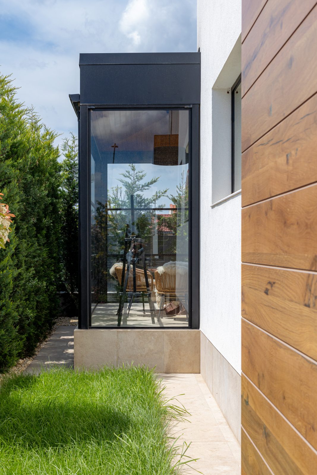 Terasă Protejată și Acces în Curte cu Sisteme de Sticlă Securizate Armonice